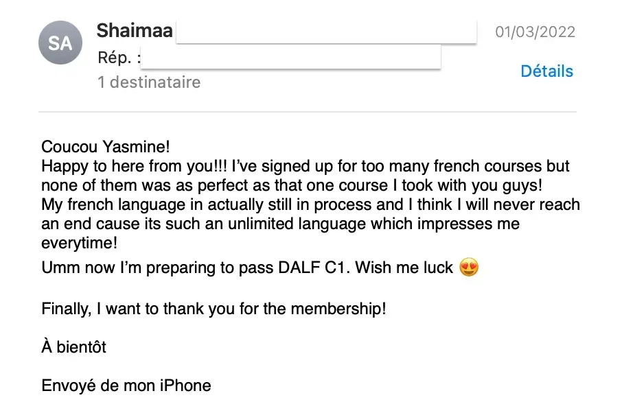Ma promesse dans tous mes cours et notamment dans le Café Français est que si tu suis ma formation et que tu travailles entre les cours, tu auras des résultats et tu rentabiliseras ton investissement.