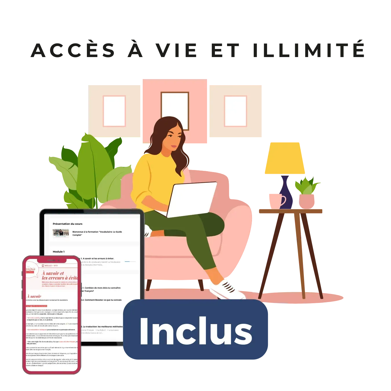 Tu auras accès à toute la formation dans son intégralité immédiatement. Tout ce contenu t’attend à l’intérieur de ton espace membre.