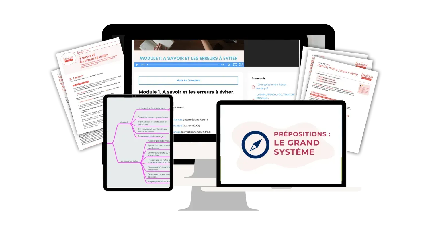 C'est une formation digitale ultra complète qui te livre un système, une structure et une vue d’ensemble de toutes les prépositions pour renforcer une base solide en français et être francophone à ta façon.